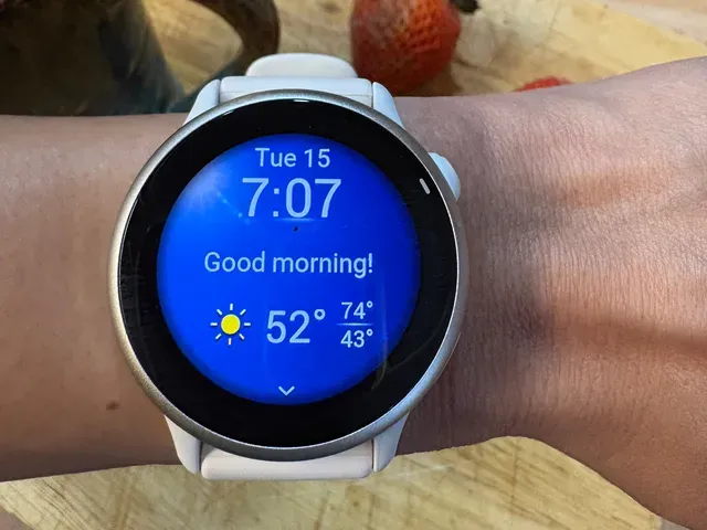 Waterproof fitness tracker with heart rate monitor, sleep tracking, and smartphone notifications.